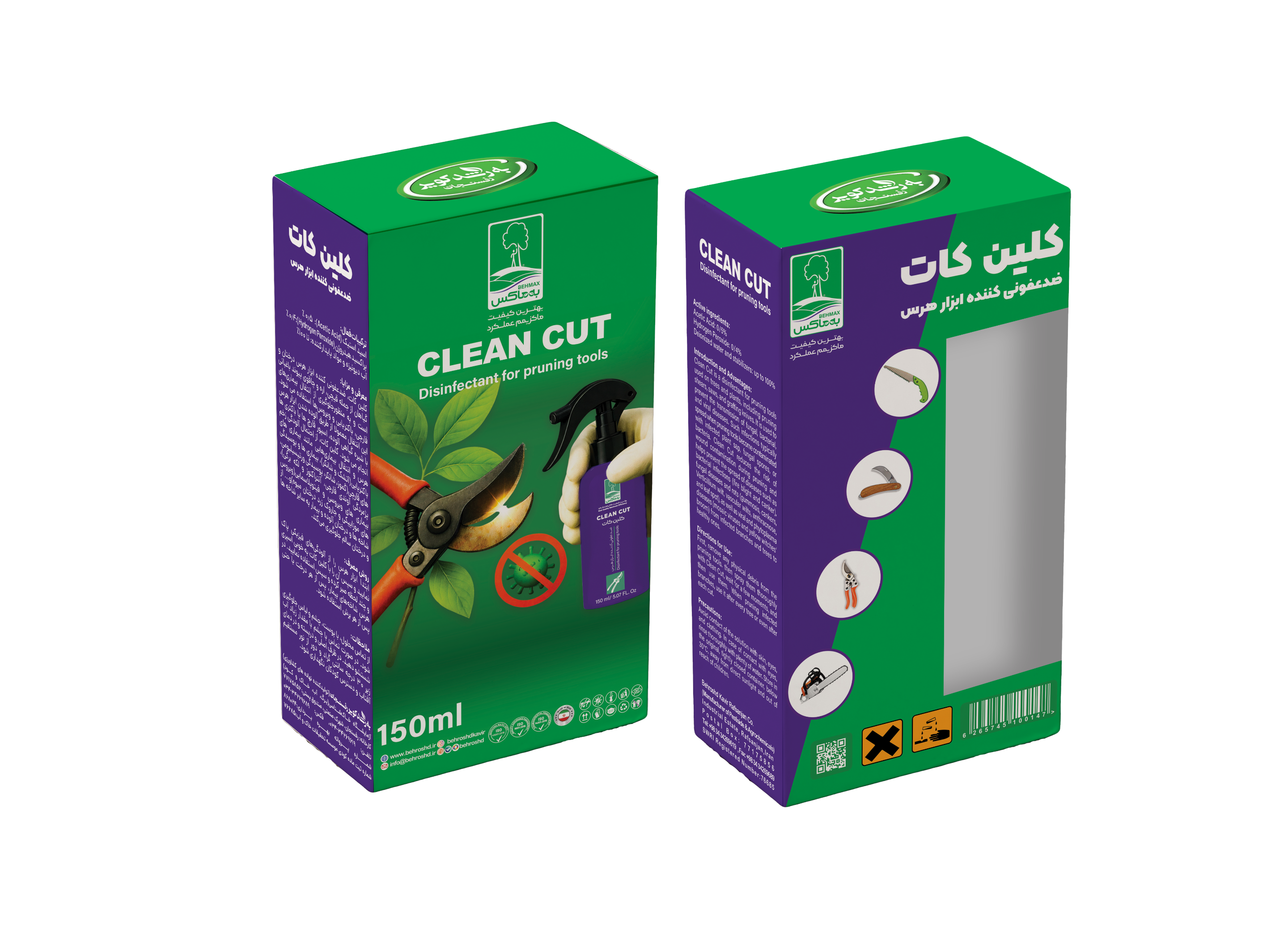 | معرفی محصول | کلین کات، ضدعفونی کننده ابزار هرس درختان و گیاهان از جمله قیچی، اره و چاقوی پیوند باغبانی است و به منظورجلوگیری از انتقال بیماریهای قارچی، باکتریایی و ویروسها استفاده می شود. این انتقال معمولا از طریق آلوده شدن ابزار هرس با شیره گیاهی آلوده، اسپور قارچ ها یا باکتری ها انجام می شود. کلین کات، از احتمال آلودگی زخم هرس و انتقال بیماریهایی مانند بیماری های باکتریایی(آتشک و شانکر)، بیماری ها و پوسیدگی های قارچی(گموز، شانکر، پوسیدگی ورتیسیلیومی، پژمردگی آوندی قارچی، آنتراکنوز و لکه برگی)، بیماری های ویروسی و فیتوپلاسمایی(ویروس های موزاییکی و جاروک زرد درختان میوه)و... از شاخه ها و درختان آلوده و بیمار به سایر شاخه ها و درختان سالم جلوگیری میکند. |