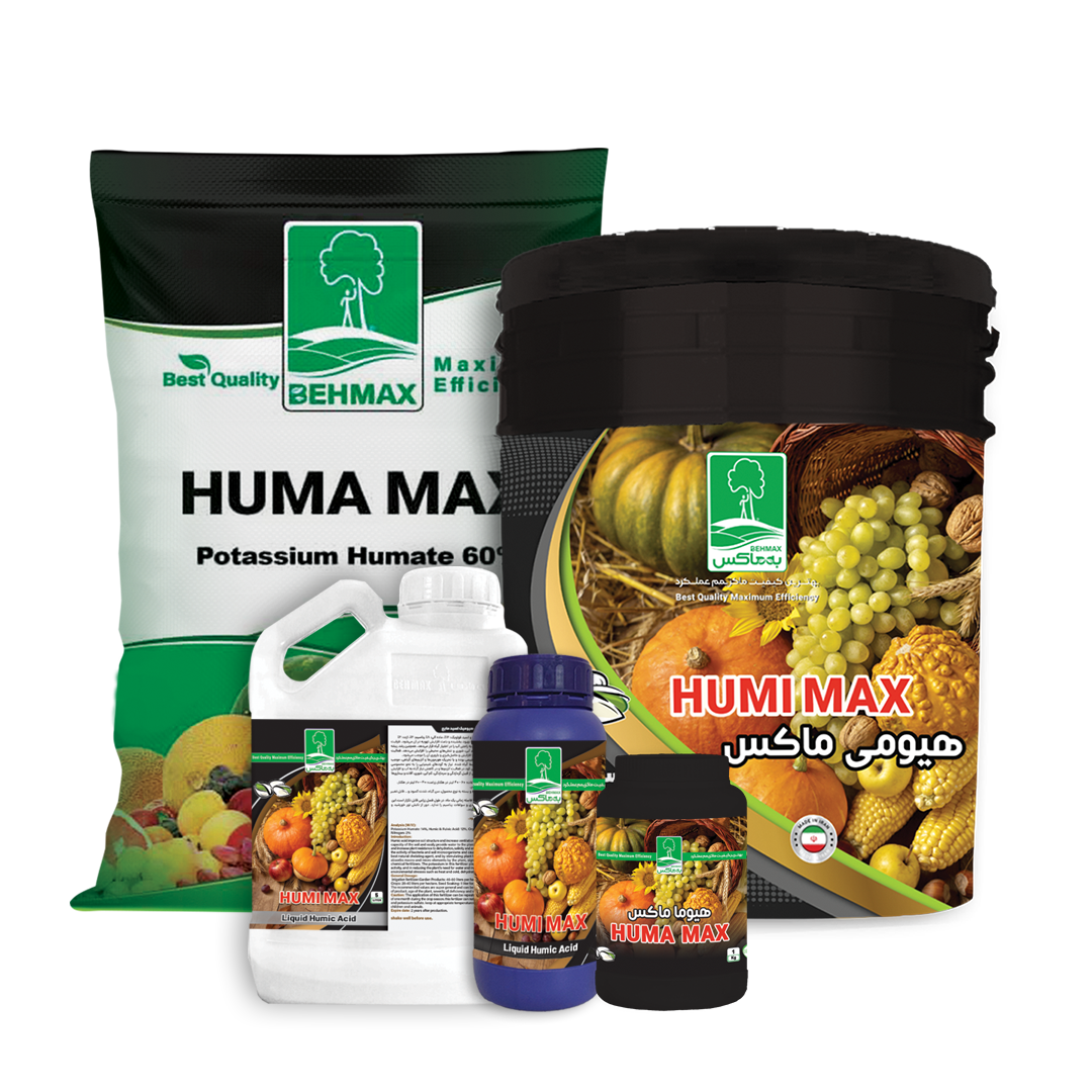 | معرفی محصول | هیوما ماکس(کریستال و پودر) و هیومی ماکس(مایع)، با درصد بالایی از اسید هیومیک و اسید فولویک استخراج شده از بهترین معادن لئوناردیت، از دسته کود های آلی کاملا محلول در آب هستند که جهت افزایش حاصلخیزی و باروری خاک، در تمامی دوران فصل رشد گیاهان باغی و زراعی مورد استفاده قرار می گیرند. |