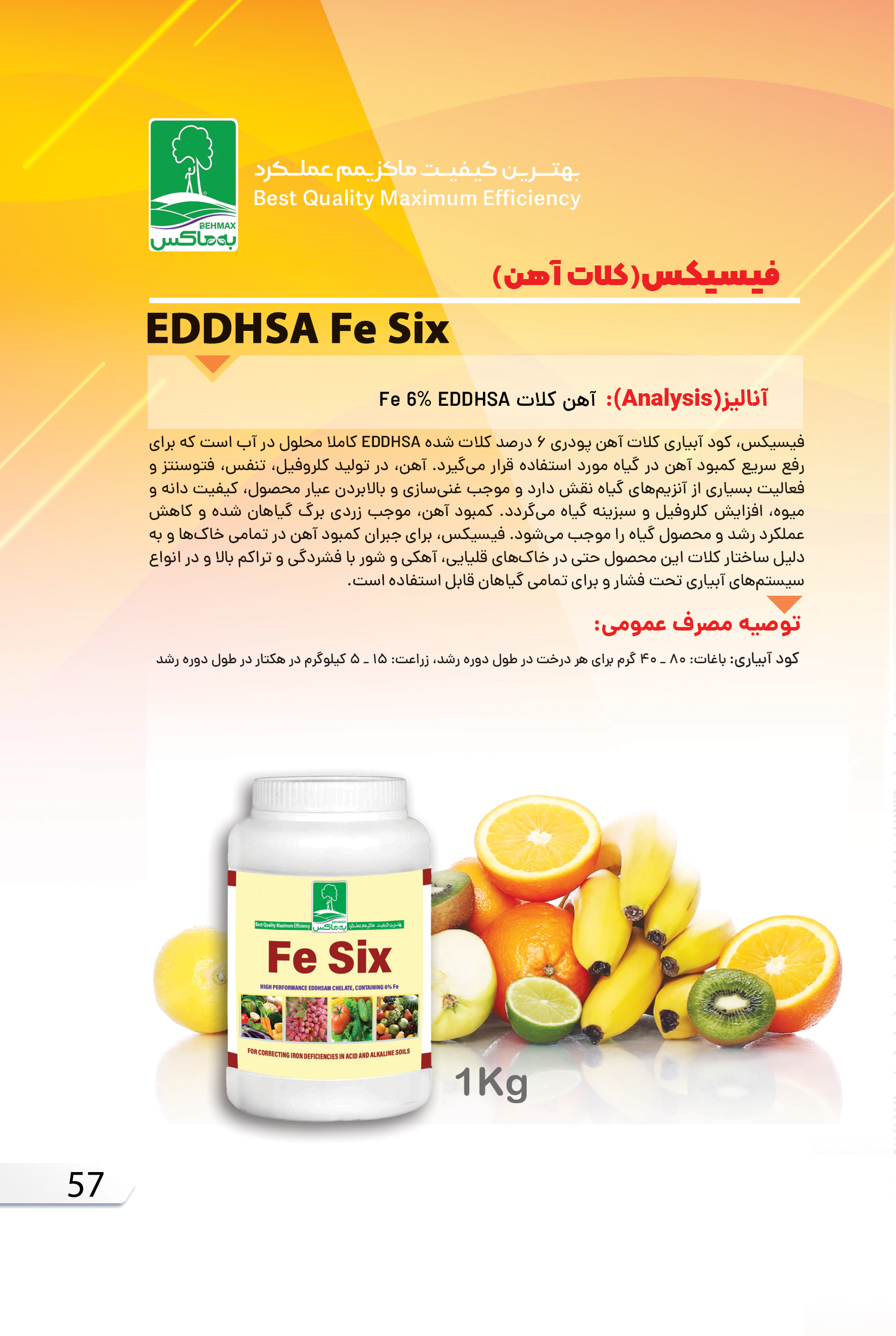 | مزایای محصول | فیسیکس، کاملا خالص و به فرم کلات، برای جبران کمبود آهن در تمامی خاکها، به خصوص خاکهای قلیایی، آهکی و شور با فشردگی و تراکم بالا، به صورت مصرف خاکی همراه با آب آبیاری و یا در انواع سیستم های آبیاری تحت فشار و برای تمامی گیاهان قابل استفاده است. استفاده از این محصول، اثرات ناشی از فقر آهن در گیاه مانند زردبرگی، کاهش تعداد دانه در خوشه، کوچک شدن دانه ها را مرتفع می نماید. کلات شدن آهن با EDDHA، جذب مناسب آن توسط ریشه گیاه حتی در آب ها و خاک های قلیایی نامرغوب را موجب شده است. |