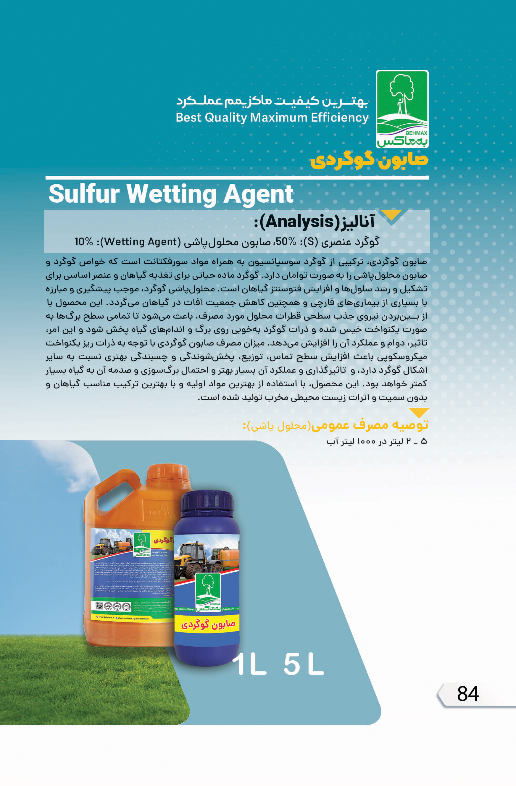 گوگرد عنصری: 50 درصد صابون محلول پاشی: 10 درصد |