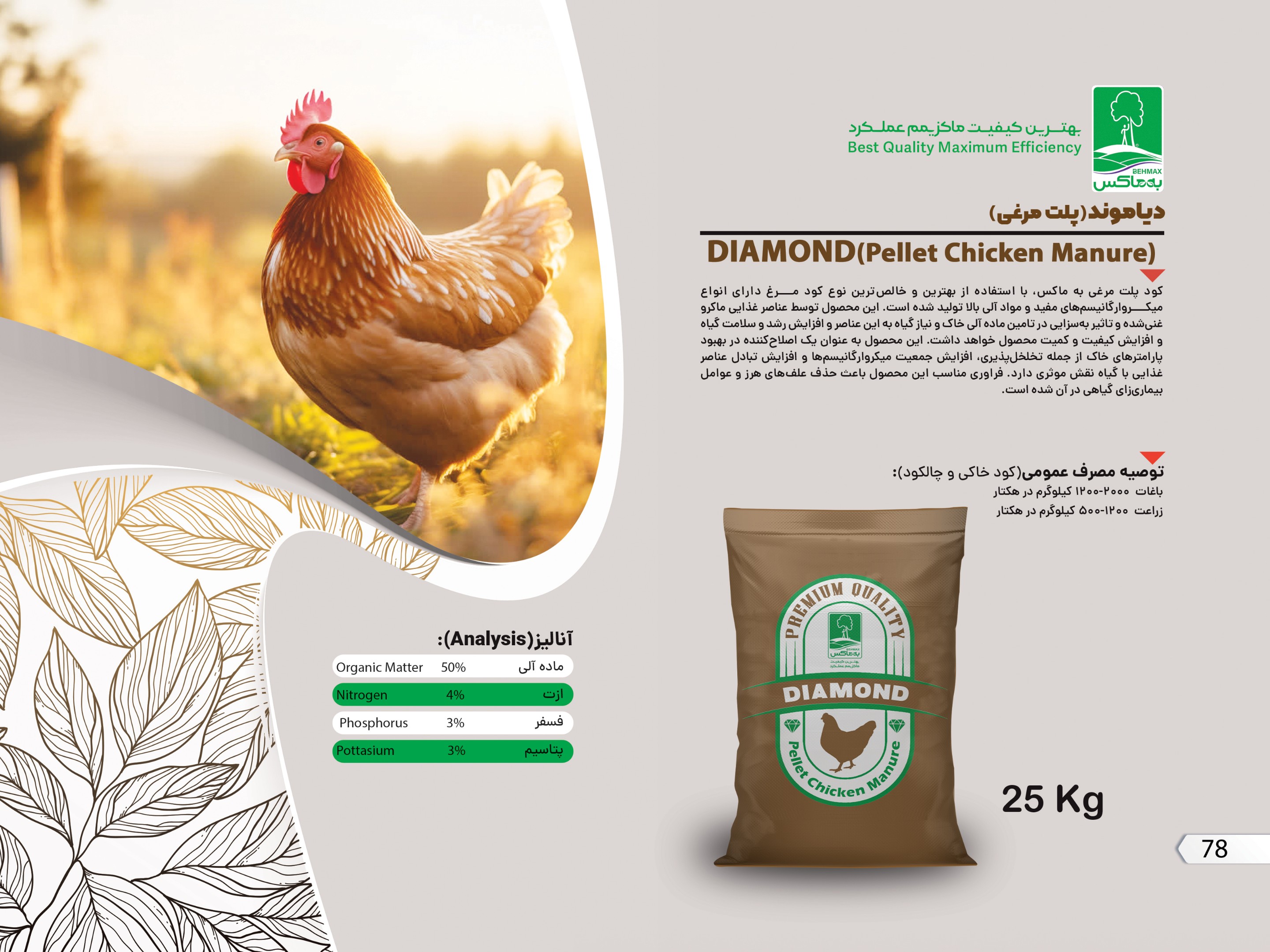 معرفی محصول | این محصول منبع غنی از ویتامینها و مواد مغذی برای خاک است. اگر بخواهیم پلت مرغی را با کود دیگر حیوانات مقایسه کنیم، باید بگوییم، کلسیم، فسفر، پتاسیم و نیتروژن بیشتری نسبت به کودهای حیوانی دیگر دارد. بنابراین استفاده از پلت مرغی در صنعت کشاورزی، یک اقدام هوشمندانه در جهت دستیابی به زمین حاصلخیز و محصول باکیفیت با صرف هزینه خیلی کم به حساب میآید. |