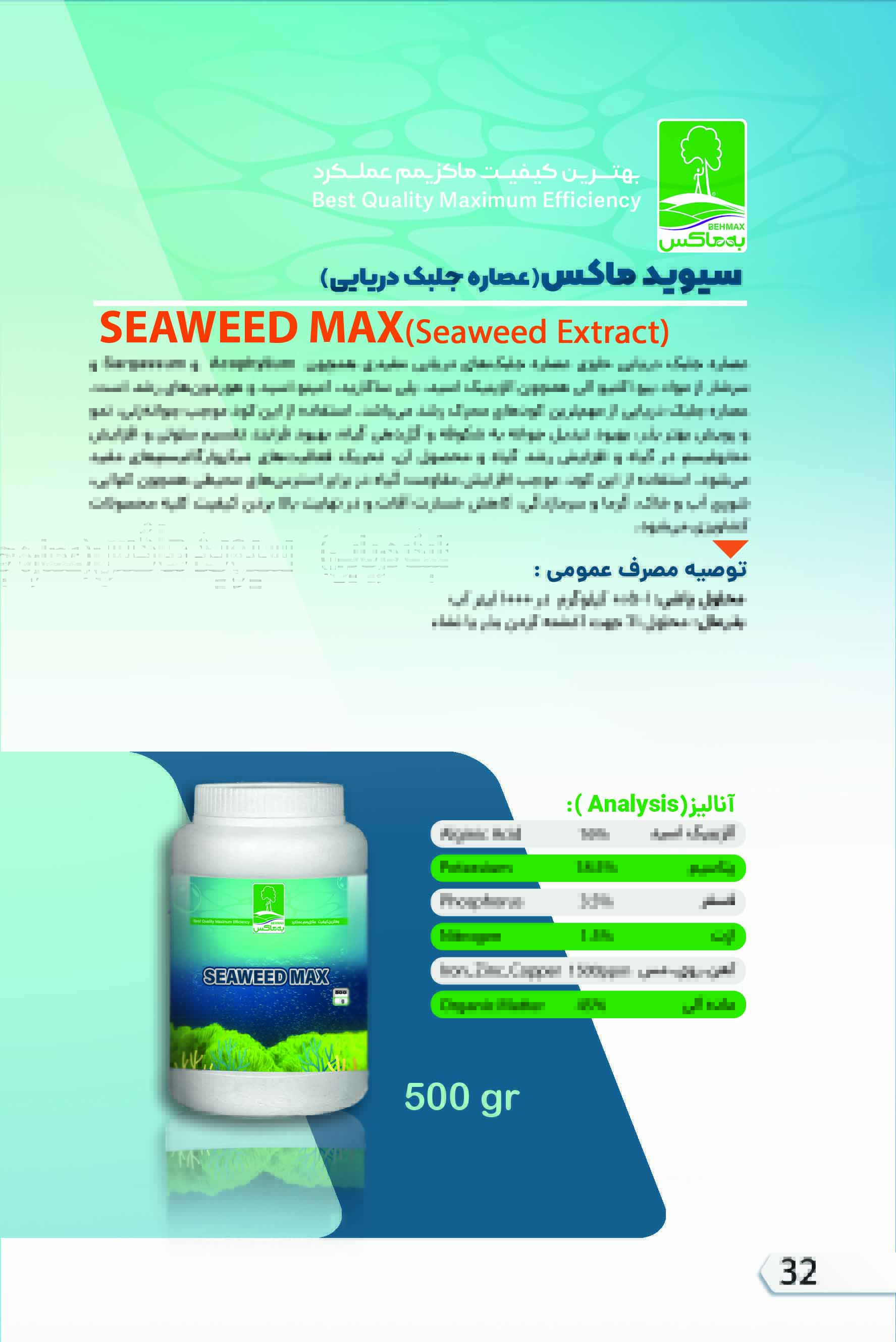 معرفی محصول عصاره جلبک دریایی حاوی عصاره جلبک های دریایی مفیدی همچون Aacophyllum و Sargassum و سرشار از مواد بیو اکتیو آلی همچون آلژینیک اسید، پلی ساکارید، آمینو اسید و هورمون‌های رشد است.